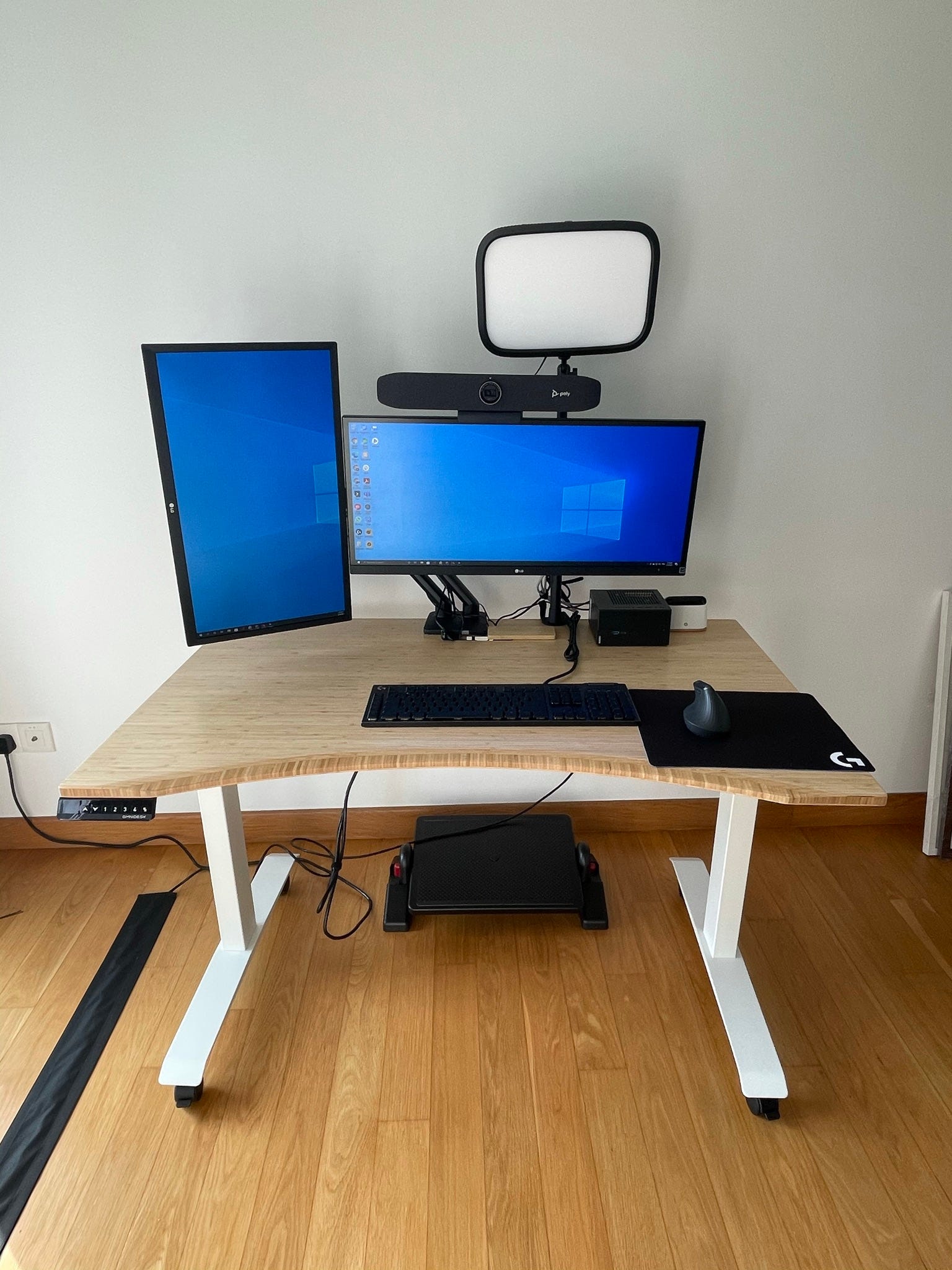 Apart from the visual setup, the final thing that makes your WFH setup move from amateur hour to beast mode is lighting. I cannot tell you how much this has positively impacted the quality of the picture on calls. I now pretty much have the light on for every call even if it’s during the day as I can adjust the brightness based on the sun so you always look bright. The light can be controlled from an app or your desktop and can the big difference between this and cheaper lights its the immense control you have over the power of the light (from barely on to “ouch this hurts my eyes”) but also the temperature of the light which you can adjust to the perfect warmth. I really love it and the question you should ask more is: do you need two Elagto air lights (smaller version) or just one big one like I have.